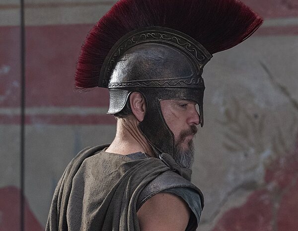 A continuación vemos a Tom Holland como Telémaco en una cena en un lugar público. "Tengo que saber qué le pasó a mi padre", le dice con expresión contrariada y lágrimas cayendo por sus mejillas al personaje de Jon Bernthal, que responde con un discurso exaltado sobre el mito de Ulises (Odiseo) y las incógnitas y leyendas en torno a su desaparición tras la Guerra de Troya. Intercalados vemos planos de un hombre en una cueva, otro con soldados griegos recorriendo la ciudad sosteniendo banderas y, finalmente se revela a Ulises varado en medio del océano.